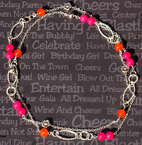 Item #0404 Orange and Ruby Jade Necklace SOLD Orange & Ruby Jade, Sterling Silver Flowers, Links, Chains & Clasp. Length 32"